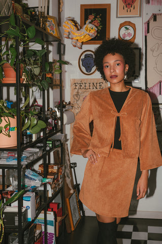 Gros coup de coeur pour cette veste nouée au devant en corduroy.