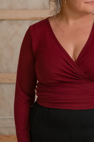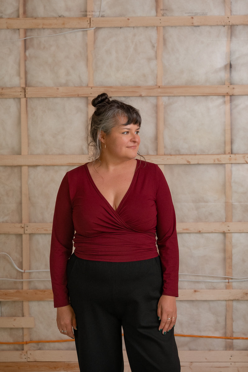 Le chandail wrap c'est la parfaite manches longues à mettre par dessus plein d'items. Il est aussi très beau porté seul ou encore sur une robe noué au devant.