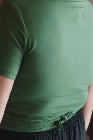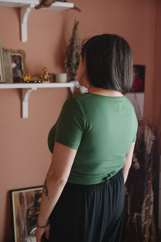 Le chandail wrap est un chandail court qu'on noue au dos. Il est aussi magnifique en superposition.